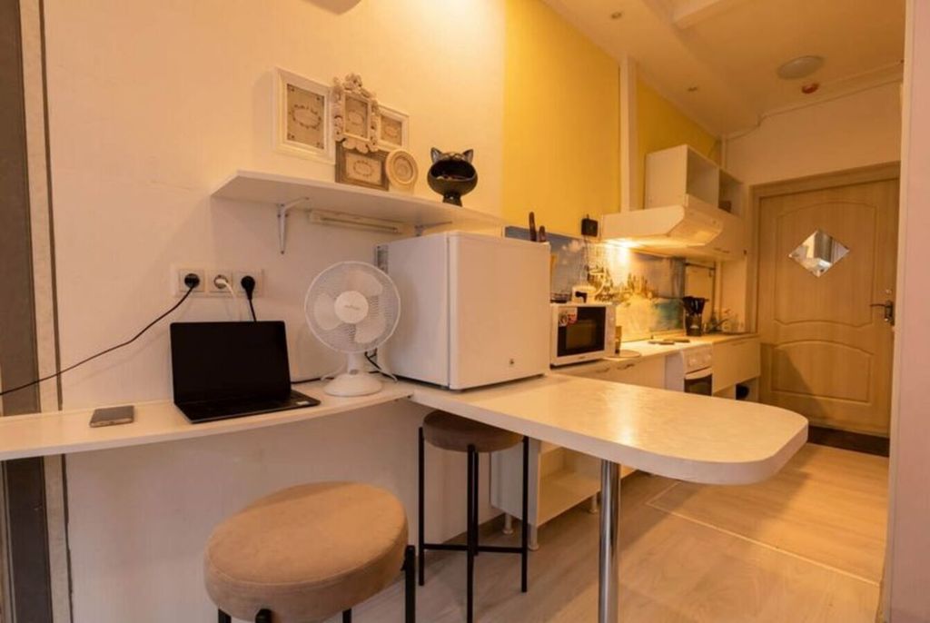 Фото на сайте не соответствует действительности, студия мягко сказать изношена, с неприятным запахом сырости, в 20 кв/м разместили сушилку для всего белья для следующих жильцов, а место и так нет, но трогать нельзя. Освещение частично не работает, шторы прикрывают часть окна Если бы увидел все это добро до оплаты не решился бы....... По хорошему ночлежка Не советую.... Не в деньгах дело, это не дорого, там просто не приятно находиться!